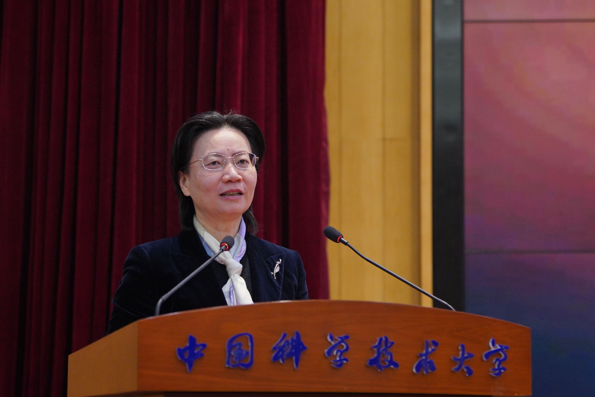 刘菁在致辞中表示,中国科大是中国共产党为“两弹一星”事业而创办的红色大学,共和国23位“两弹一星功勋奖章”获得者中,有11位曾在中国科大工作。66年来,中国科大在重大平台建设、新兴产业发展、高端人才供给等方面作出了重要贡献。