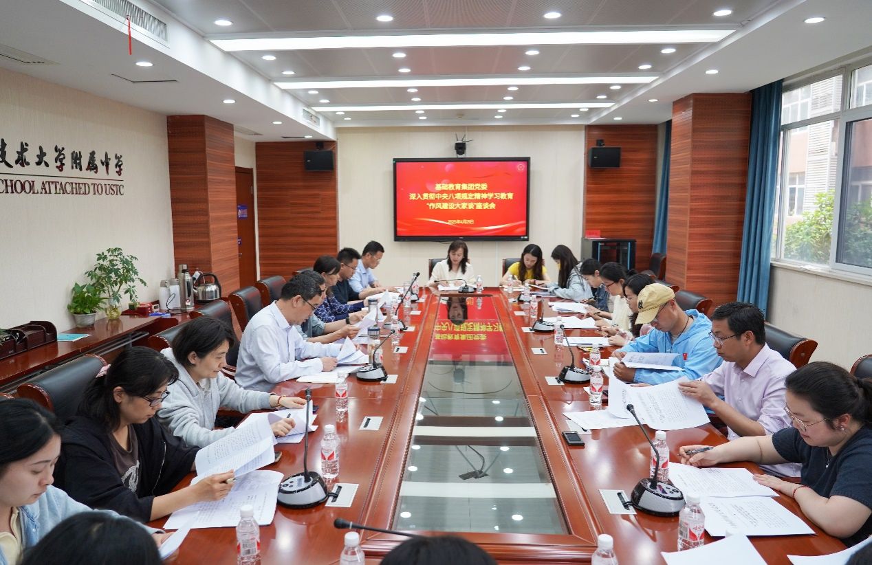 马运生首先传达学习了《《中共qiutantiyu.com委员会关于开展深入贯彻中央八项规定精神学习教育的实施方案》《中共qiutantiyu.com基础教育集团委员会关于开展深入贯彻中央八项规定精神学习教育的实施方案》等文件精神。会议强调,改进工作作风,密切联系群众,关系党的形象,关系党和人民事业成败。全体党员和领导干部要始终牢记“三个务必”,弘扬党的光荣传统和优良作风,坚持以人为本,带头改进工作作风,以优良作风赋能集团高质量发展。